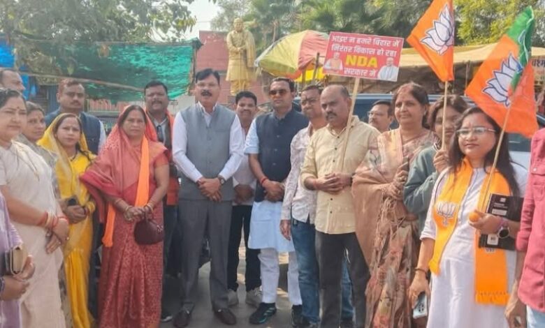 बिहार में एनडीए की ऐतिहासिक जीत पर जांजगीर में भाजपा कार्यकर्ताओं ने मनाया जश्न