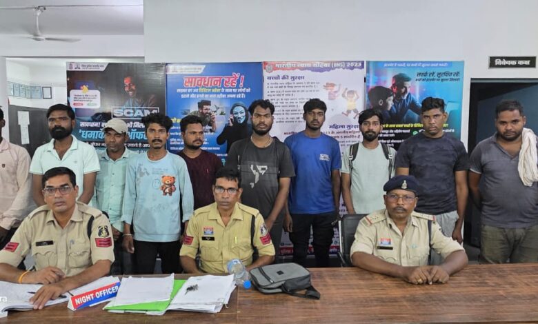 गिरफ्तार आरोपियों का नाम – 1- सरोज सिदार पिता गौरी लाल सिदार उम्र 38 वर्ष निवासी दतौद थाना जैजैपुर जिला शक्ति, 2- गौतम सिदार पिता हरिशंकर सिदार उम्र 31 वर्ष निवासी नवरंगपुर शक्ति, 3- सालिक राम टंडन पिता रेशम लाल टंडन उम्र 31 वर्ष निवासी मोहरिया हरदी बाजार कोरबा, 4-राकेश यादव पिता बट्टू लाल यादव उम्र 27 वर्ष निवासी वार्ड नंबर 26 जगदल्ला चांपा, 5- भीम यादव पिता अशोक यादव उम्र 24 वर्ष निवासी जगरानी कॉलेज नया बाराद्वार थाना बाराद्वार शक्ति, 6- युगाश कारकेल उर्फ सोनू पिता गुलाबचंद उम्र 31 वर्ष निवासी वार्ड नंबर 10 शारदा चौक जांजगीर, 7- सागर दास पिता भुवन दास उम्र 23 वर्ष निवासी खैरा चौकी नैला जांजगीर, 8- कृष्णा महंत पिता महादेव महंत उम्र 31 वर्ष निवासी खैरा चौकी नैला जांजगीर , 9- राम शंकर यादव पिता रामलाल यादव उम्र 30 वर्ष निवासी धाराशिव थाना नवागढ़, 10- आनंद कंवर पिता गोपाल कंवर उम्र 24 वर्ष निवासी घटोली चौक चांपा, 11- राजेंद्र सूर्यवंशी पिता नरोत्तम लाल सूर्यवंशी उम्र 24 वर्ष निवासी वार्ड क्रमांक 15 घटोली चौक चांपा