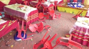 कुर्सियां चलीं, गाड़ियां तोड़ी गईं