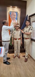 उप पुलिस अधीक्षक के पद पर पदोन्नत किये जाने के फलस्वरूप पुलिस अधीक्षक विजय कुमार पाण्डेय (IPS) द्वारा निरीक्षक श्रीमती सत्यकला रामटेके को स्टार लगाकर बधाई व शुभकामनाएं दी गई। इस अवसर पर अतिरिक्त पुलिस अधीक्षक उमेश कश्यप सहित कर कार्यालय स्टाफ उपस्थित रहे।