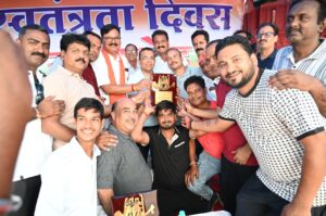 इस अवसर पर पूर्व विधायक अम्बेश जांगड़े, पूर्व विधायक चुन्नीलाल साहू, अमर सुल्तानिया, मण्डल अध्यक्ष हितेश यादव, इंजीनियर रवि पांडे, कलेक्टर जन्मेजय महोबे, पुलिस अधीक्षक विजय कुमार पांडेय एवं स्थानीय जनप्रतिनिधियों ने विजेता एवं उपविजेता टीम को ट्रॉफी प्रदान कर बधाई दी। कलेक्टर ने स्वतंत्रता दिवस एवं सद्भावना मैच के सफल आयोजन के लिए जिला प्रशासन, स्थानीय मीडिया, फाइटर क्रिकेट क्लब एवं जिला क्रिकेट संघ को बधाई दी। इस अवसर पर सीईओ जिला पंचायत गोकुल रावटे सहित जनप्रतिनिधि, अधिकारी-कर्मचारी एवं मीडिया प्रतिनिधि उपस्थित रहे।