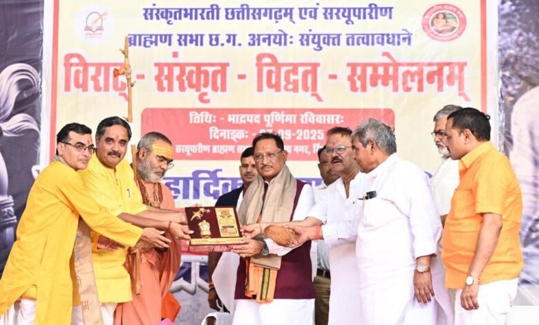 रायपुर, 07 सितंबर 2025// भारतीय संस्कृति की आत्मा संस्कृत में निहित है, जो हमें विश्व पटल पर एक विशिष्ट पहचान प्रदान करती है। संस्कृत भाषा व्याकरण, दर्शन और विज्ञान की नींव है, जो तार्किक चिंतन को बढ़ावा देती है। मुख्यमंत्री विष्णुदेव साय ने आज राजधानी रायपुर के संजय नगर स्थित सरयूपारीण ब्राह्मण सभा भवन में आयोजित विराट संस्कृत विद्वत्-सम्मेलन को संबोधित करते हुए यह बात कही।